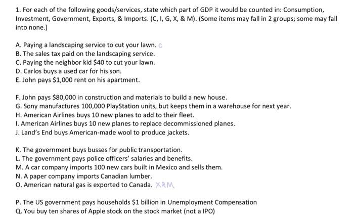 Solved 1 For Each Of The Following Goods Services State Chegg Com
